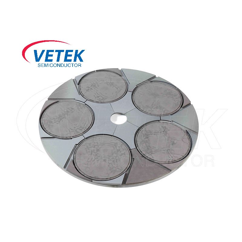 वेटेक सेमीकंडक्टरचा ixttron उपग्रह वेफर कॅरियर एक वेफर कॅरियर आहे जो आयएक्सट्रॉन उपकरणांमध्ये वापरला जातो, जो प्रामुख्याने एमओसीव्हीडी प्रक्रियेमध्ये वापरला जातो आणि विशेषत: उच्च-तापमान आणि उच्च-परिशुद्धता सेमीकंडक्टर प्रक्रिया प्रक्रियेसाठी योग्य आहे. कॅरियर एमओसीव्हीडी एपिटॅक्सियल ग्रोथ दरम्यान स्थिर वेफर समर्थन आणि एकसमान फिल्म जमा करू शकतो, जो लेयर जमा प्रक्रियेसाठी आवश्यक आहे. आपल्या पुढील सल्ल्याचे स्वागत आहे.