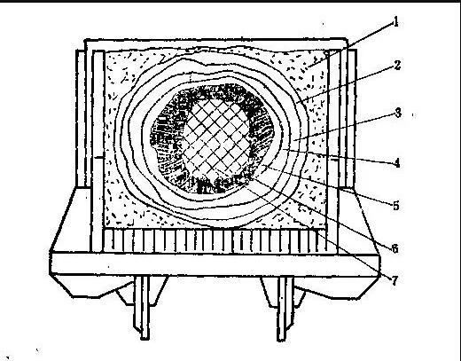 भट्टीनंतरची सामग्री बाहेरील ते आतील थरांमध्ये खालील घटक असतात: